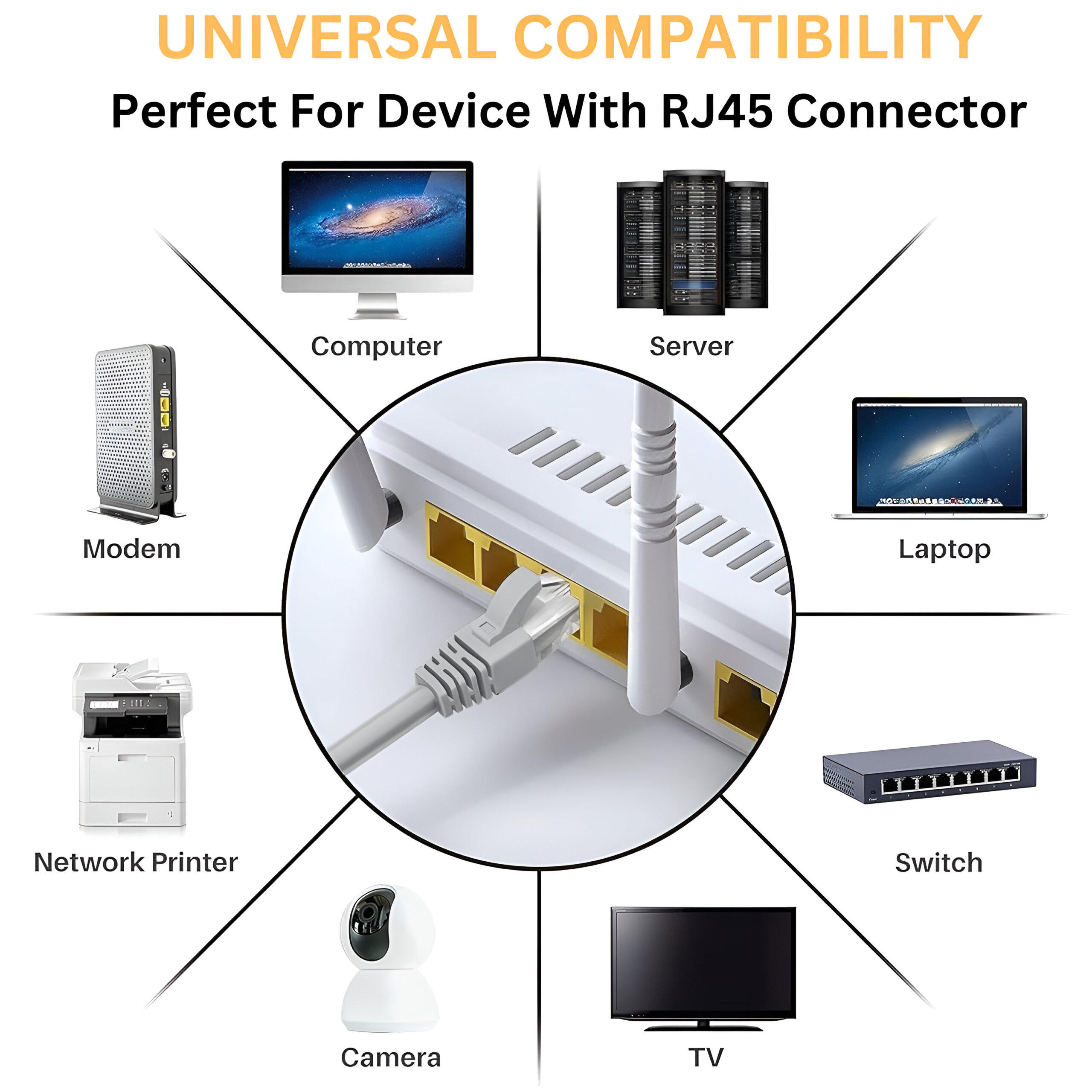 Upix Ethernet Patch Cord CAT6E, RJ45 LAN Cable is a perfect tool for connecting PC to a network. This 350 MHz stranded cable can be used on all RJ45 sockets; which include gadgets, like Computers, Laptops, Games consoles, Network Printers, Tablets for office and domestic use. It also offers universal connectivity to computers and network components, such as Routers, Switch boxes, Network Printers, Network Attached Storage (NAS) devices, VoIP phones, and PoE devices. This product is compatible and operates very effectively. It is made with proper quality check and testing.