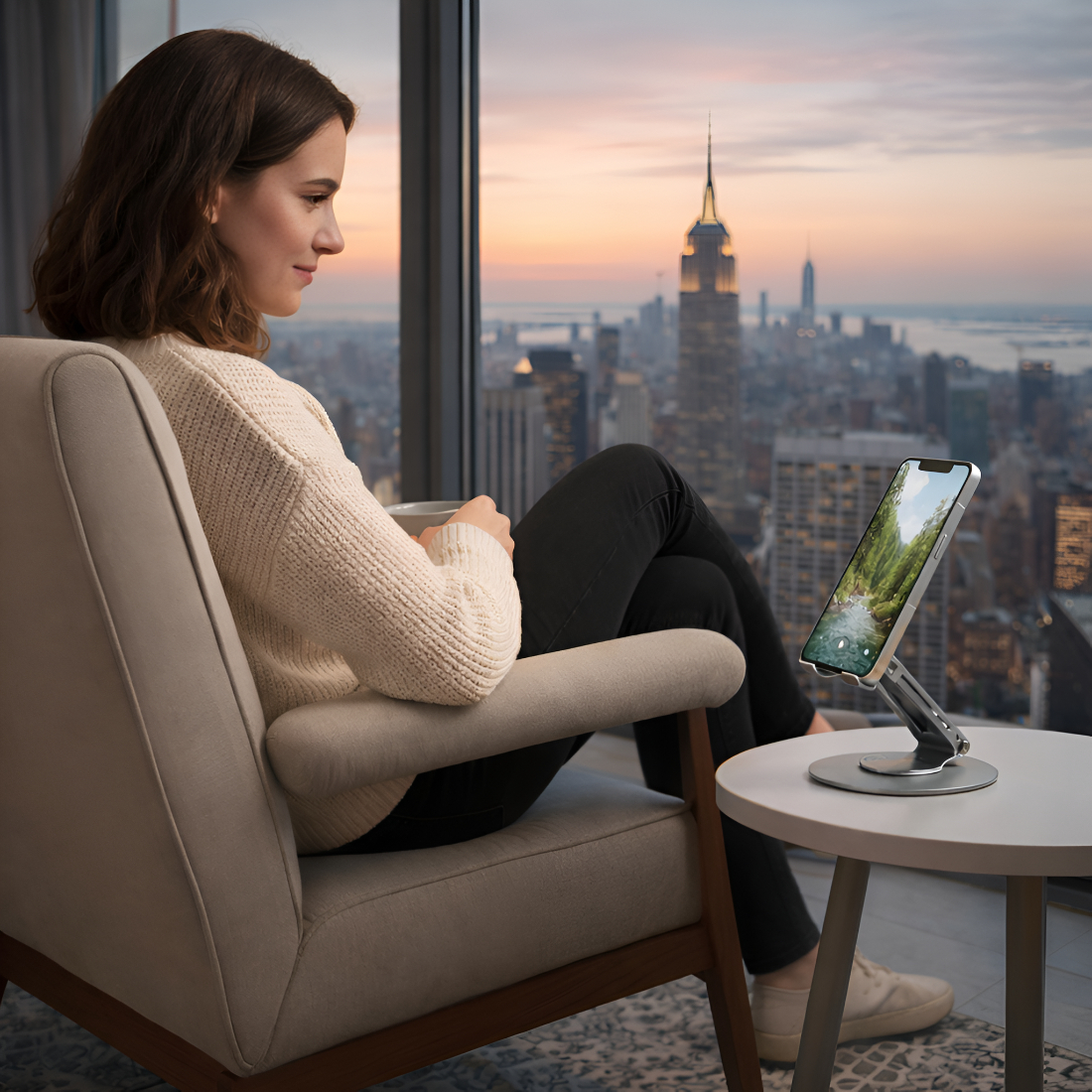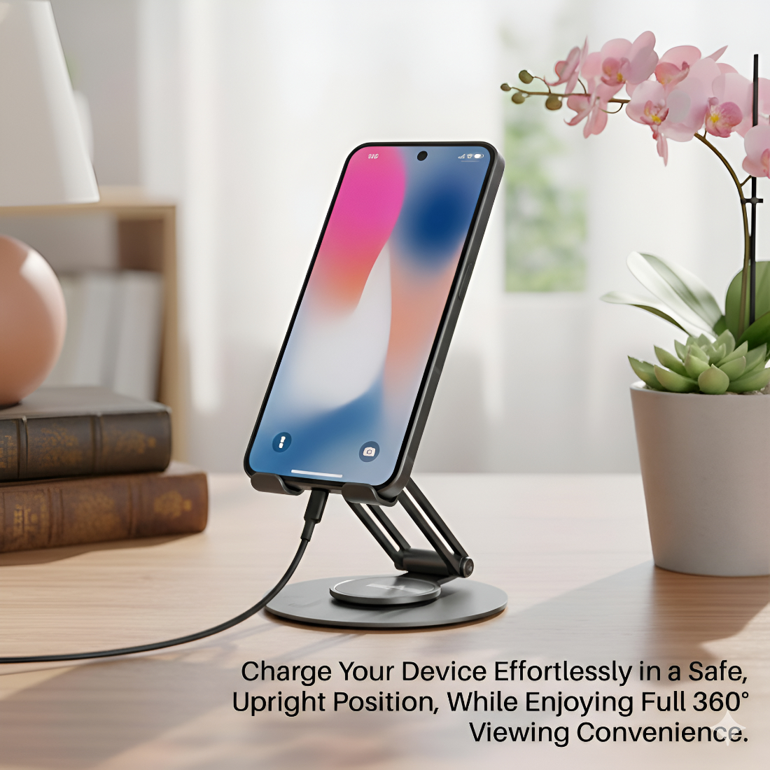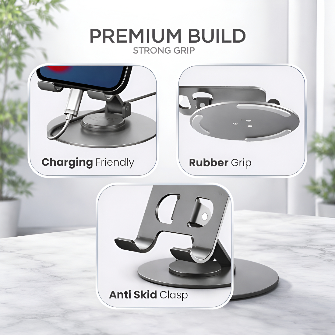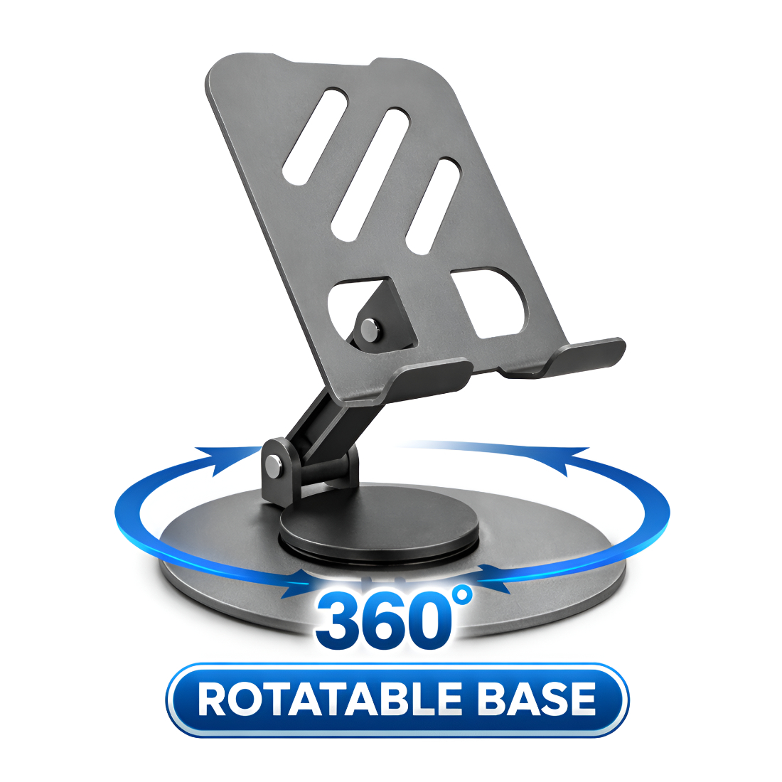 Upix Premium Metal Mobile & Tablet Stand Featuring A 360? Rotating Base And Multi-Angle Adjustment. Built With Heavy-Duty Metal Construction, It Delivers Superior Stability, Smooth Rotation, And Comfortable Hands-Free Viewing. Ideal For Work, Study, Video Calls, Gaming, Cooking, And Entertainment, This Stand Is Foldable, Portable, And Universally Compatible With Smartphones And Tablets.