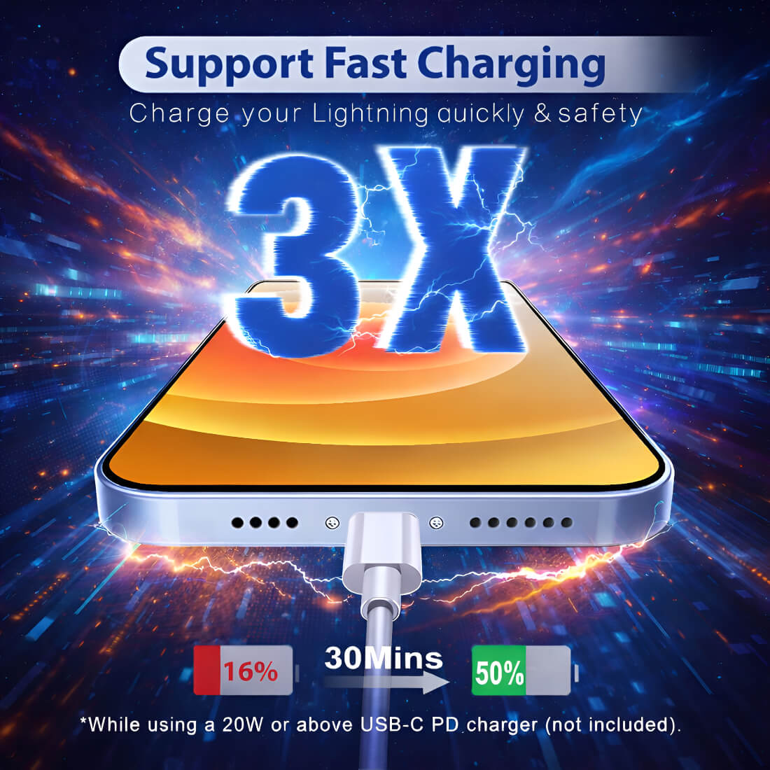 Upix Type-C to Lightning Cable 20W Power Delivery fast charging for i-Phone and i-Pad. Built for safe, stable charging and high-speed data transfer, it works perfectly with USB-C adapters, power banks, and car chargers. Durable design ensures long-lasting performance for daily use.